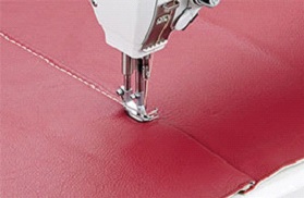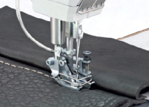Stębnówka 1-igłowa z serii H-TYPE z transportem dolnym, igłowym i górnym stopkowym.