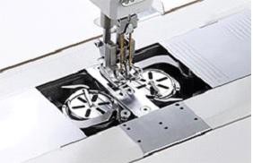 Stębnówka 2-igłowa z serii H-TYPE z transportem dolnym, igłowym i górnym stopkowym.